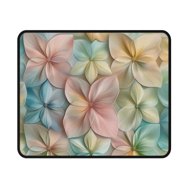 This exquisite design weaves together a serene tapestry of pastel blooms, each flower unfolding with delicate grace. The soft palette of pale pinks, muted blues, and warm yellows creates an atmosphere of gentle tranquility, evoking the soothing embrace of nature's quiet moments. Each bloom, with its carefully crafted petals and subtle gradients, feels alive, as though whispering stories of renewal and calm. The interplay of hues and textures invites the viewer to explore its depth, offering a visual symphony that is both grounding and uplifting.The overlapping petals form a harmonious pattern that flows seamlessly across the composition, symbolizing balance and continuity. Every detail, from the intricate veining of the petals to their translucent, hand-painted appearance, reflects a perfect blend of fragility and resilience. This design captures the quiet strength found in nature’s gentlest expressions, reminding us to pause and find beauty in the delicate moments that often go unnoticed. It’s a celebration of serenity and subtle elegance, perfect for inspiring reflection and appreciation for life’s smallest, yet most profound, details.